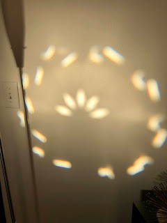 Working on his art project.I love the pattern that shows on the wall when the sun streams in the window on our front door.